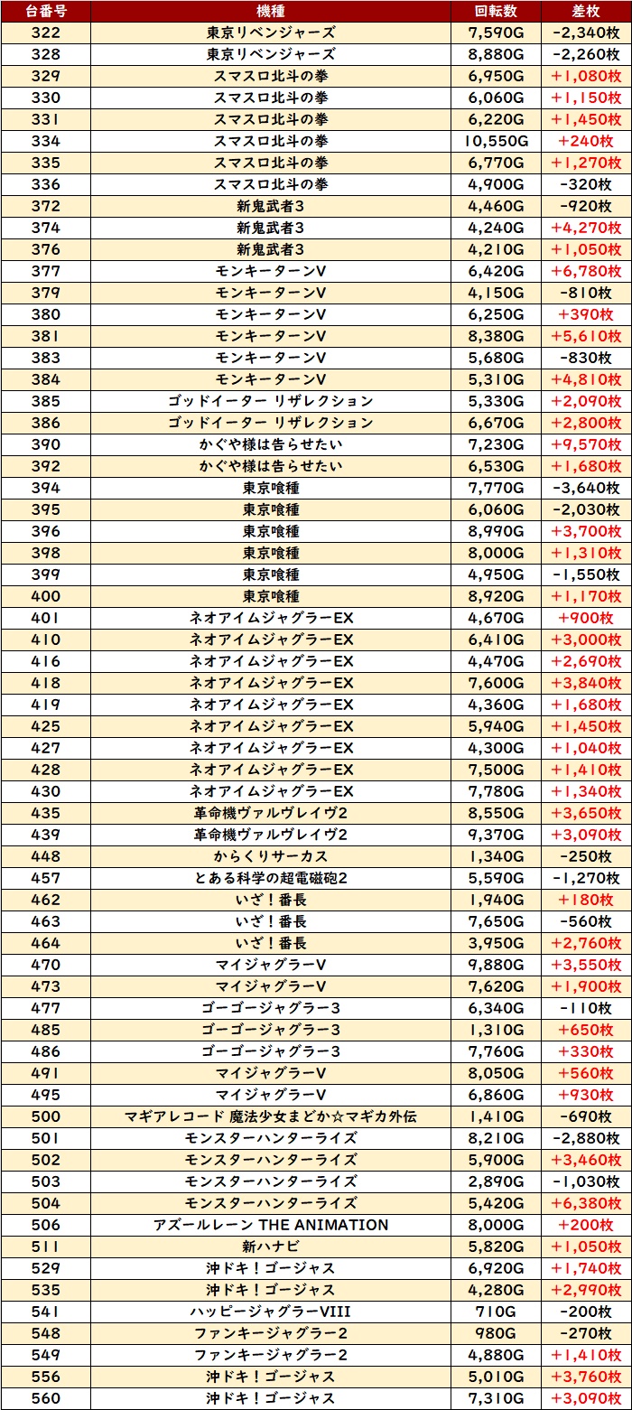 ピックアップした台の半数が差枚数+4,800枚超えと圧巻の結果を残しており、ユーザー達の熱気がこちらにも伝わってきた!