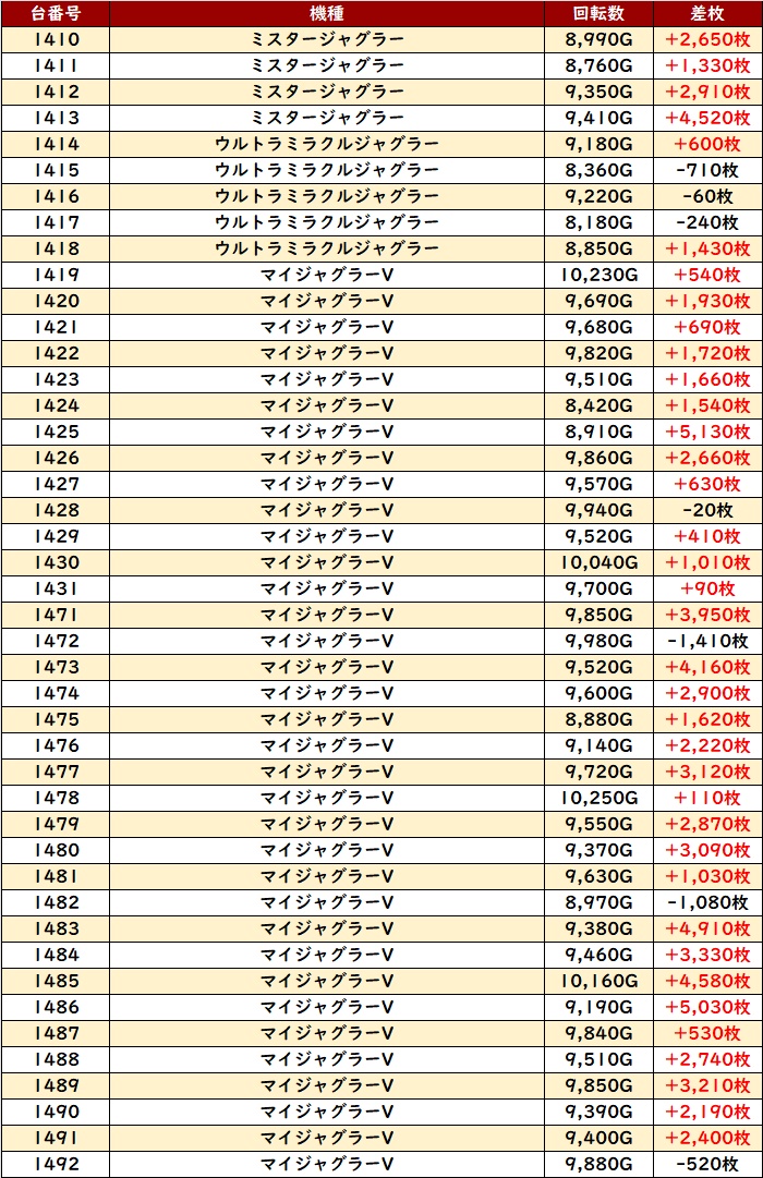 ・1台あたりの平均差枚数:+2,210枚