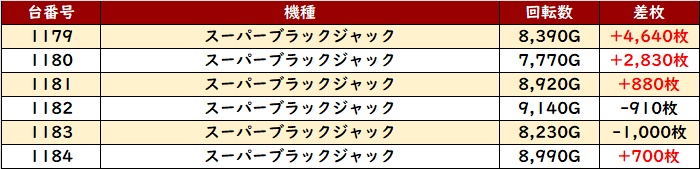 他にも「スーパーブラックジャック」から優秀な稼働・出玉感が見られ、好調さを周囲に示していた。