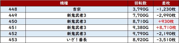 また「スマスロ吉宗~いざ番 448~453」の多くが回転数7,700G以上の凄まじい勢いに!