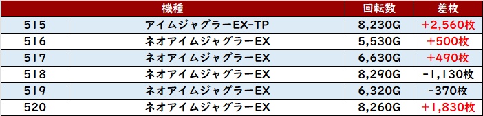 ・1台あたりの平均差枚数:+920枚
