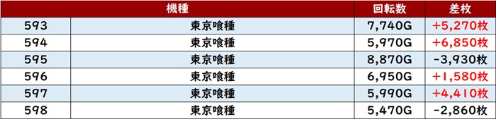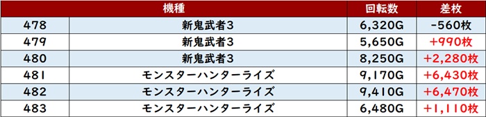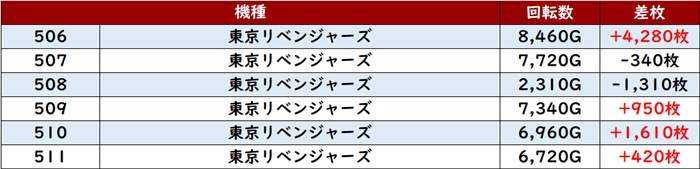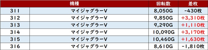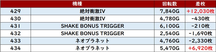 なんと差枚数+8,700枚超えが2台見受けられ、ポテンシャルを存分に発揮していた。