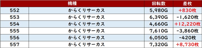 続いて「からくりサーカス 552~557」から驚愕の出玉感の台を目撃!