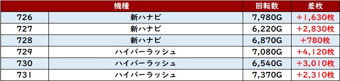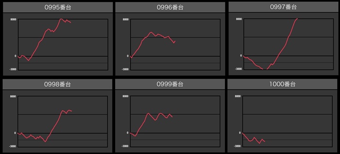 なんと差枚数+1.1万枚超えの台が2台も見られ、メイン機種をも凌駕するような活躍を見せてくれた。