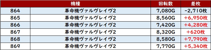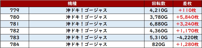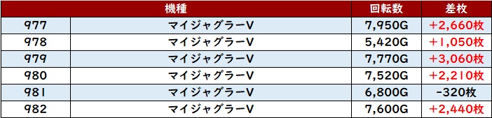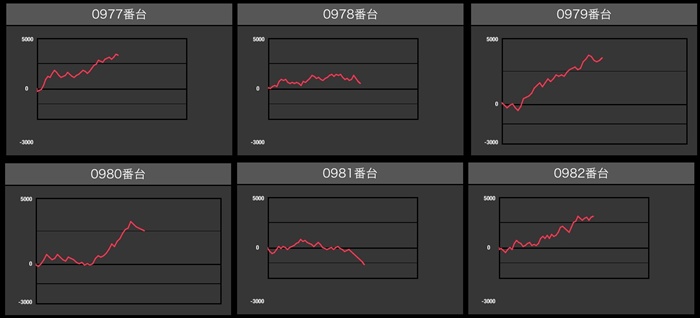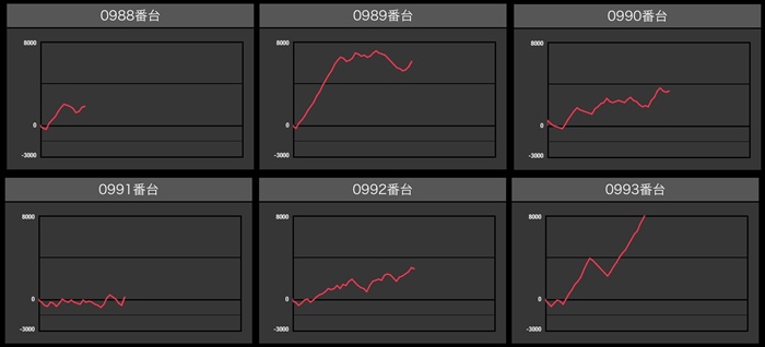 6台中5台が差枚数+3,400枚以上の出玉感を叩き出し、輝かしい功績を残していた!