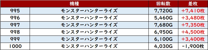 まずは「モンハンライズ 995~1000」が大きな盛り上がりに!