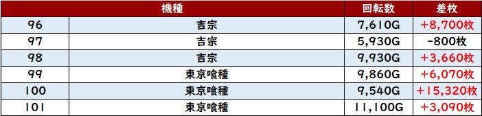 続いて「スマスロ吉宗~東京喰種 96~101」も機種を跨いで驚愕の出玉感に!