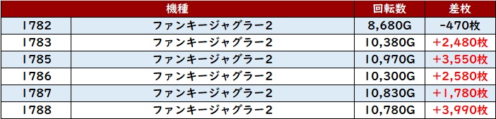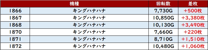 高い稼働に伴い全台大幅プラス差枚を記録し、注目度の高い箇所の1つとなった!