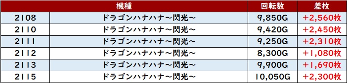 まずは「ドラハナ閃光 2108~2115」が優秀な状況を感じられる結果に!