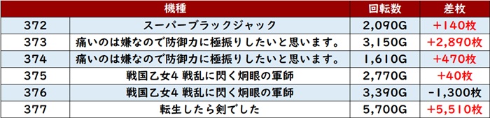 こちらも差枚数+6,130枚と凄まじい出玉感が確認でき、スマスロの活躍を印象付けた。
