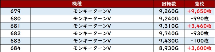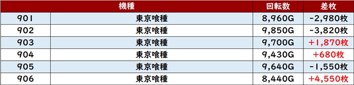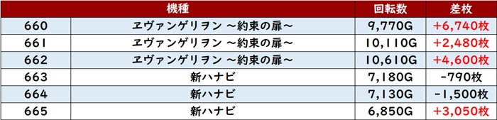 その内の半数が差枚数+4,000枚超えと状況の良さも相まって圧巻の光景を作り出していた。