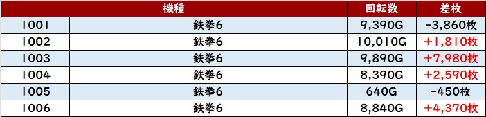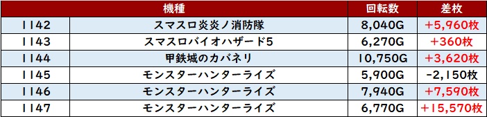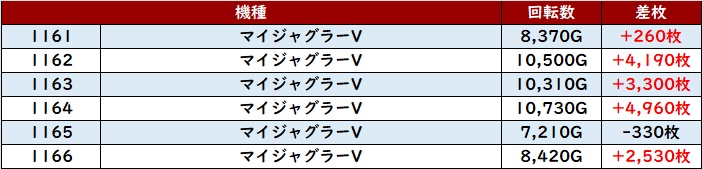 更に「マイジャグ5 1161~1166」半数が回転数1万G超えと圧巻の稼働状況に!