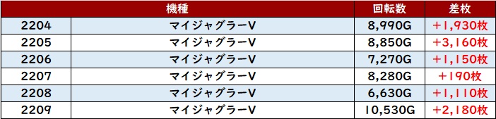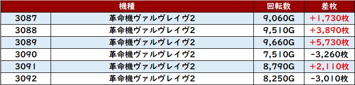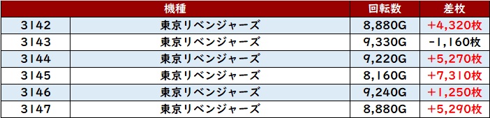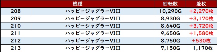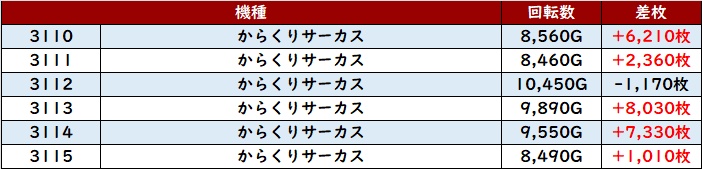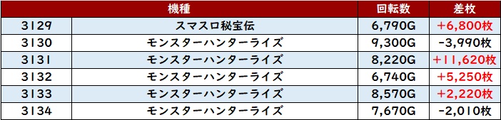 中には回転数11,650Gと終日にわたってぶん回される台も見られる中、差枚数+12,840枚を筆頭に大きな出玉感が目立っていた!
