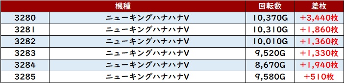 更に「ニューキンV 3280~3285」全台プラス差枚で盛況に!