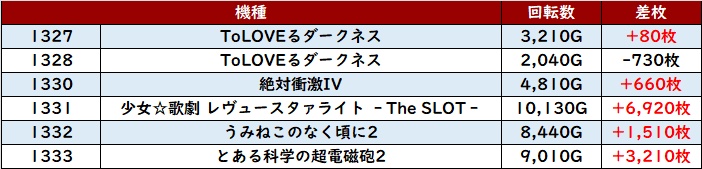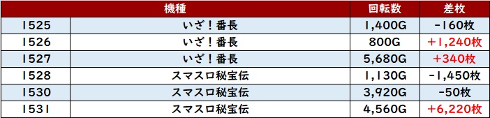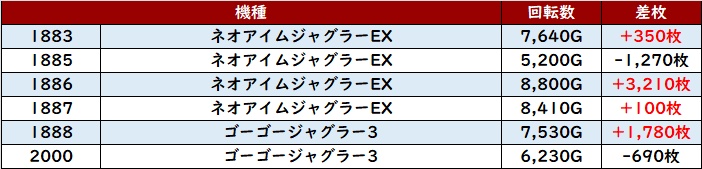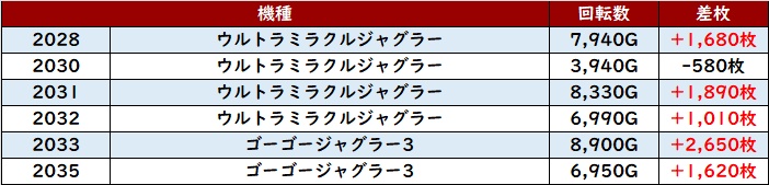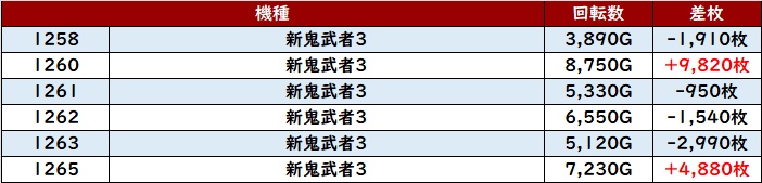 6台中5台が大幅プラス差枚と優秀な結果で、状況の良さを匂わせていた。