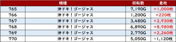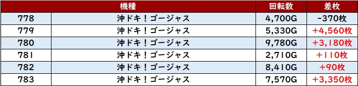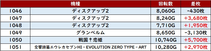 差枚数+10,040枚を筆頭に殆どの台がプラス差枚を収め、状況の良さを周囲に知らしめた!