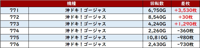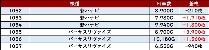 ・集計機種計54台総差枚数:+80,200枚