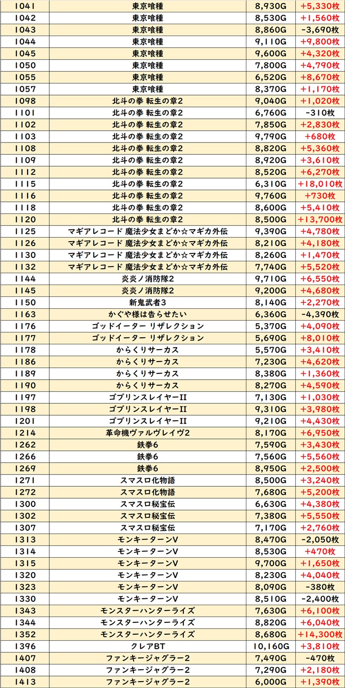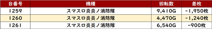 続いて「スマスロハナビ」「スマスロ炎炎」が全台系と思しき数値を記録!