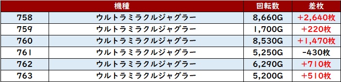 6台中5台がプラス差枚となり、中には差枚数+1.2万枚超えの台も見られ、ポテンシャルの高さを窺うことができた!