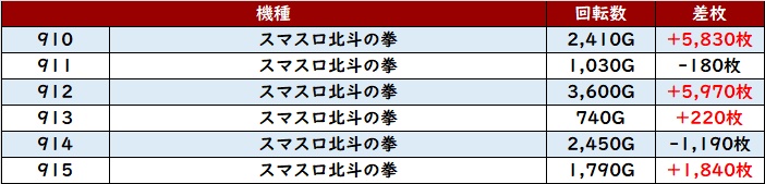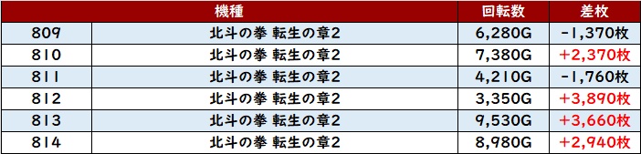 更に「北斗転生2 809~814」が大健闘!