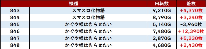 まずは「スマスロ化物語~かぐや様 843~848」が良好な稼働と出玉感に!