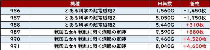 ・20スロ全448台総差枚数:+116,550枚