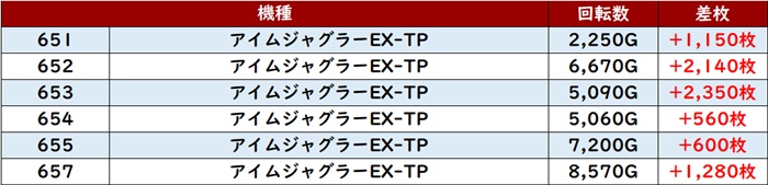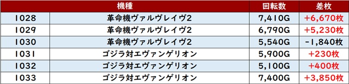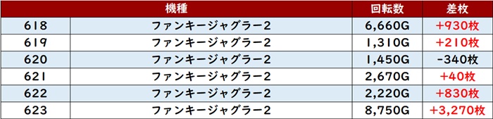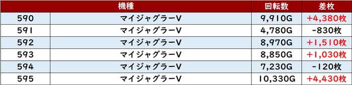 こちらも半数以上が差枚数+2,400枚超えと大きな出玉感が見られ、ユーザー達の満足度に繋げていた。