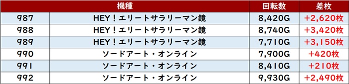 また「エリサラ鏡~SAO 987~992」からも粘り腰のユーザーを多数目撃!