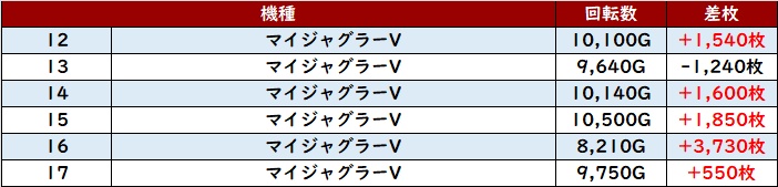 続いて「マイジャグ5 12~17」が全台回転数8,200G超えと終日高稼働に!