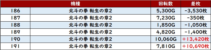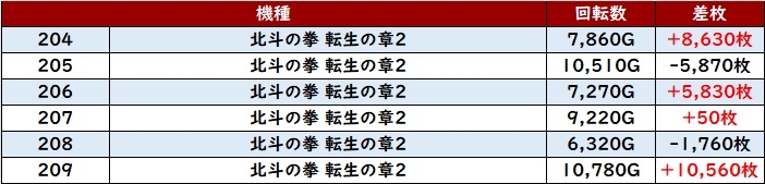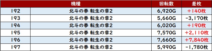 まずは「北斗転生2」が3箇所で好調さを露わに!