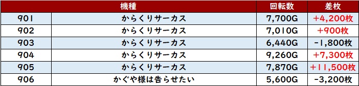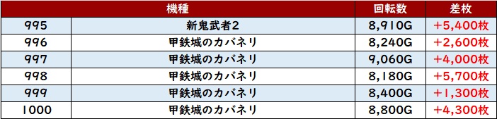 こちらも差枚数+5,000枚を筆頭に出玉感で溢れ返っており、Aタイプの底力を見せつけていた。