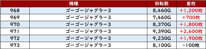 全台大幅プラス差枚に加えて半数以上が差枚数+4,000枚以上と凄まじい勢いを見せつけていた!