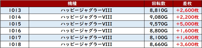 更に「ハッピー3 1013~1018」回転数8,100G以上の高稼働に!