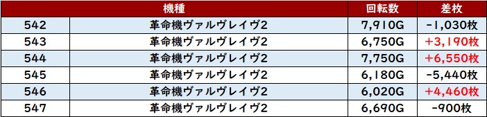 半数が回転数8,200G超え且つ6台中5台がプラス差枚と一際目立つ存在となった!