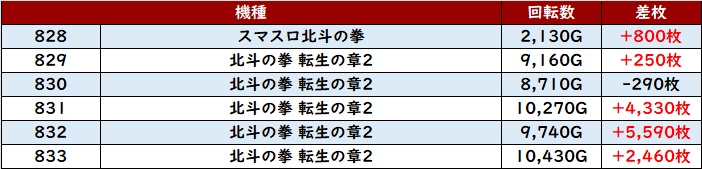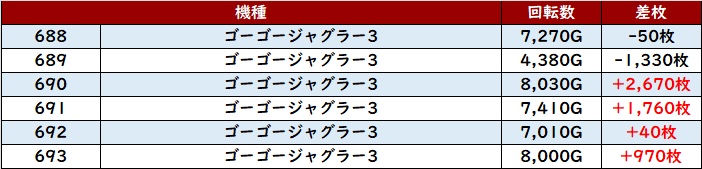 6台中5台がプラス差枚と稼働・出玉感共に文句無しの数値を残した。