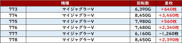 続いて「マイジャグ5 773~778」が大盛況!