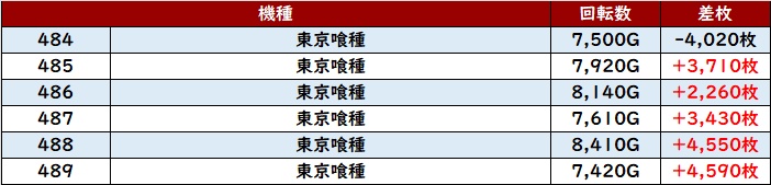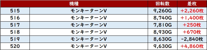 ・1台あたりの平均差玉数:+550玉