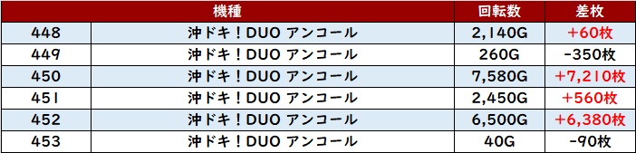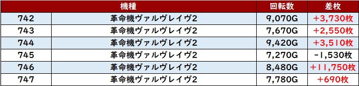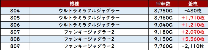 全台大幅プラス差枚と非常に優秀な結果で、メイン機種にも負けない盛り上がりを見せていた!