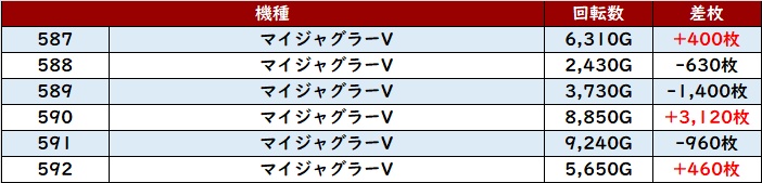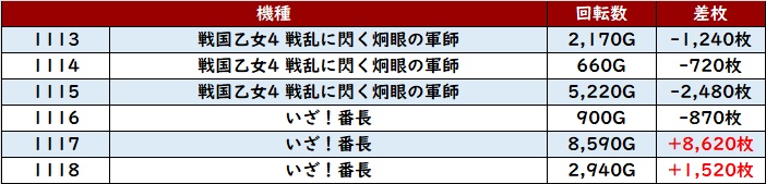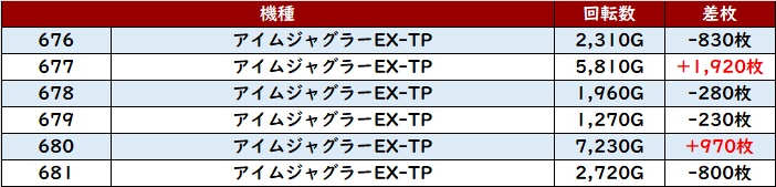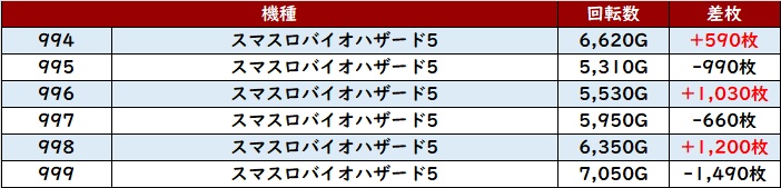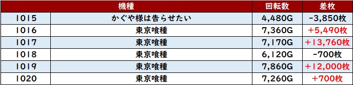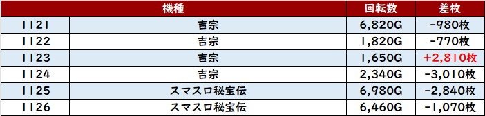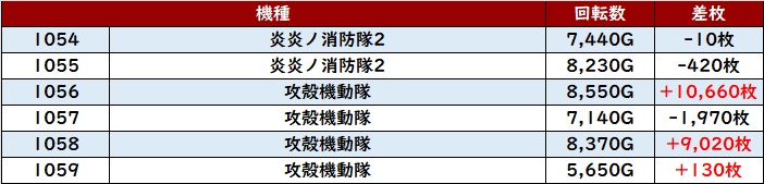 6台中4台がプラス差枚且つ中には差枚数+1.2万枚以上の台も2台確認でき、素晴らしい出玉感を記録していた。