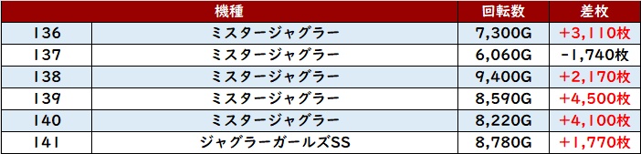 加えて全台回転数8,200G超えと状況の良さを感じ取ったユーザーが1日かけてぶん回していた。