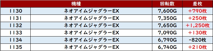 ・1台あたりの平均差枚数:+1,230枚