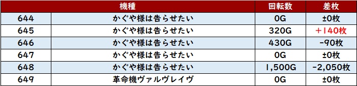 6台中5台がプラス差枚となっており、状況の良さが垣間見えた。