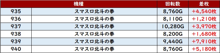 まずは「スマスロ北斗 935~940」が頭一つ抜けた盛り上がりに!