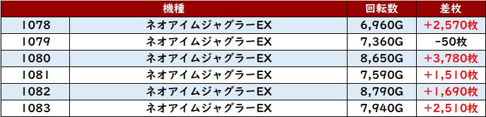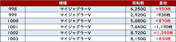 回転数8,100G超えに加え全台大幅プラス差枚と優秀な数値を叩き出し、主役の座に輝いた!