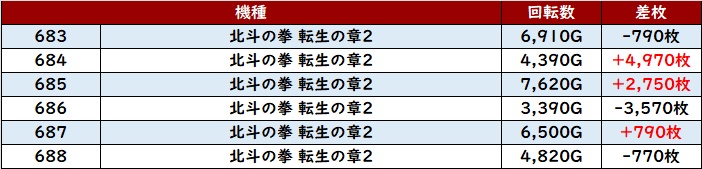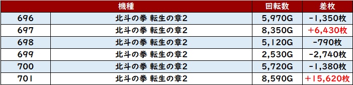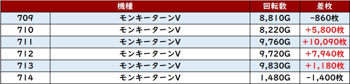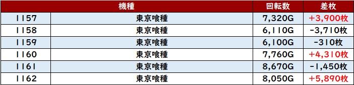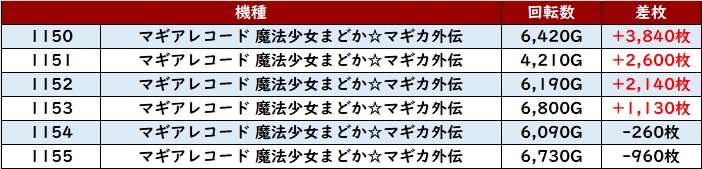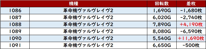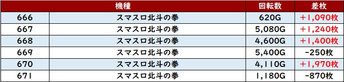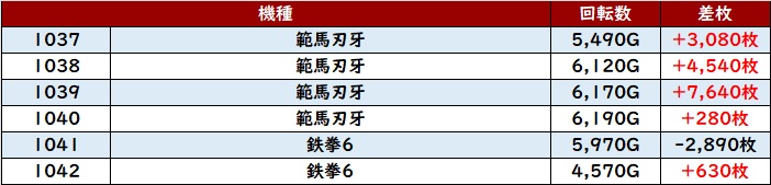 6台中4台が大幅プラス差枚を記録し、中には差枚数+10,090枚と大台を突破する台もあり、注目を集める一角となっていた!