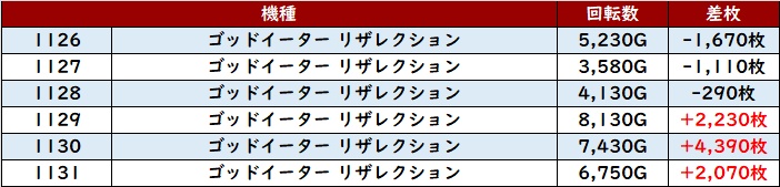 半数が差枚数+3,000枚超えと優秀な状況故の出玉感を獲得していた。