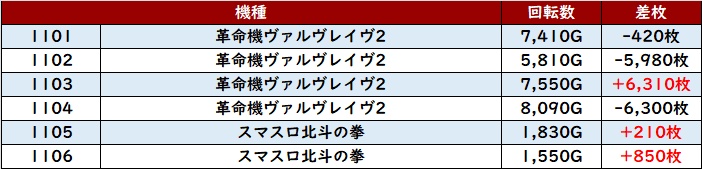 更に6台中5台が差枚数+2,000枚超えとなっており、充実感満載の結果をユーザー達に与えていた!