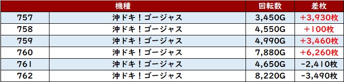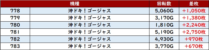 続いて「沖ドキゴージャス」が4箇所で好調さを露わに!