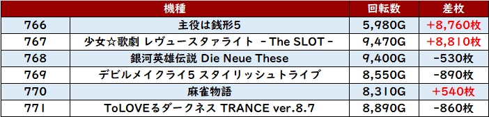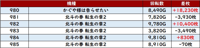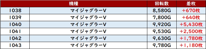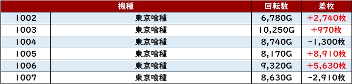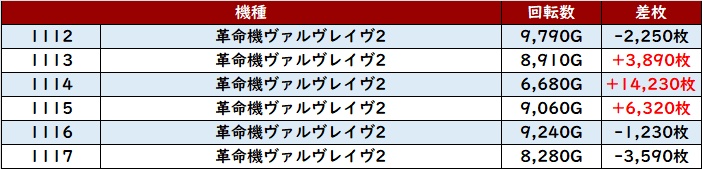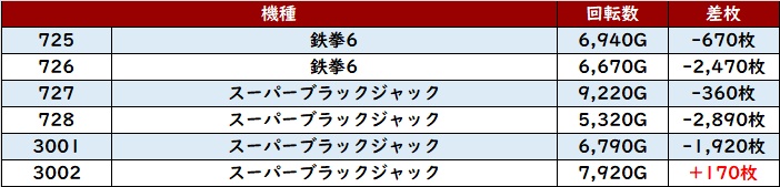 こちらも6台中5台が大幅プラス差枚となっており、多くのユーザー達の満足度に繋げていた。