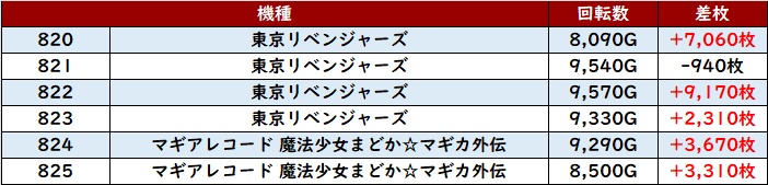 更に「東京リベンジャーズ~マギレコ 820~825」も回転数8,000G超えの圧巻の稼働状況に!